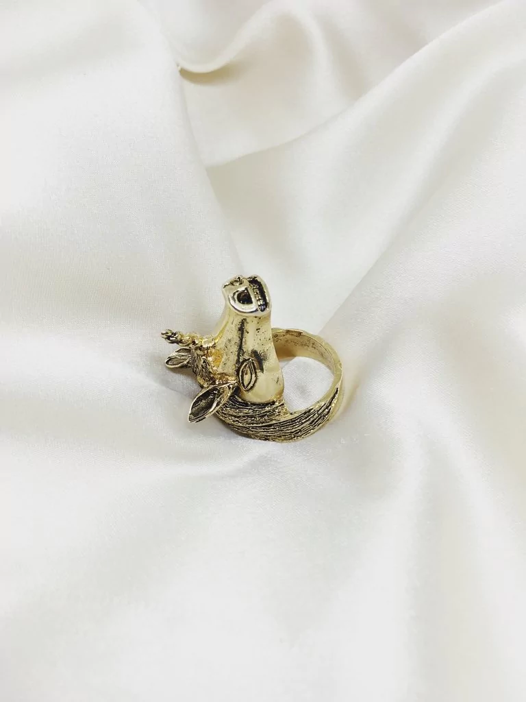 ANILLO REALIZADO EN FUNDICIÓN DE 17 MM. DE DIAMETRO CON FORMA DE UNICORNIO. BAÑADO EN NIQUEL Y SIMIL ORO.