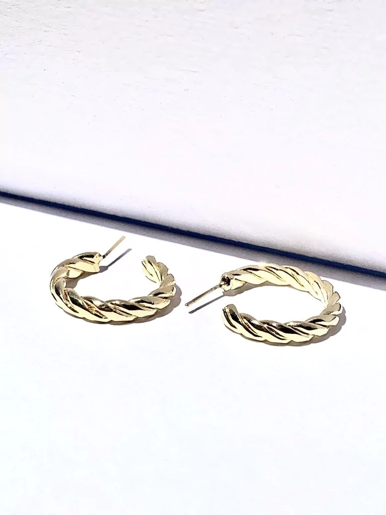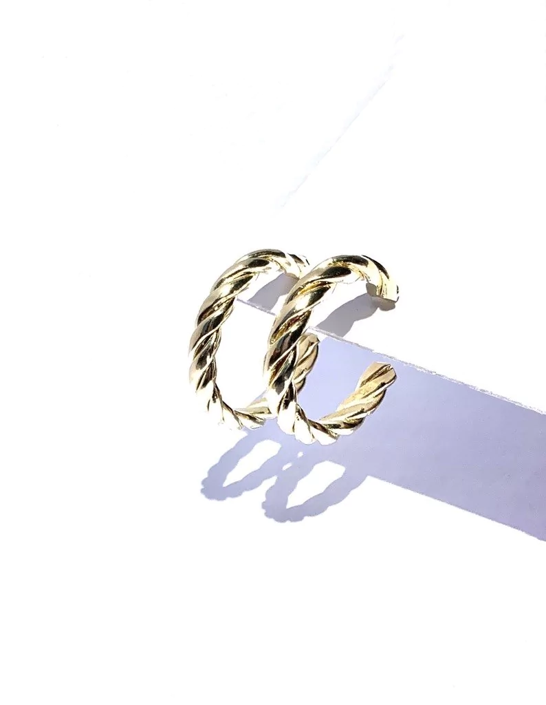 ARGOLLAS DE ALAMBRE DE BRONCE TORZADO, BAÑADOS EN ORO 24 K Y NIQUEL.