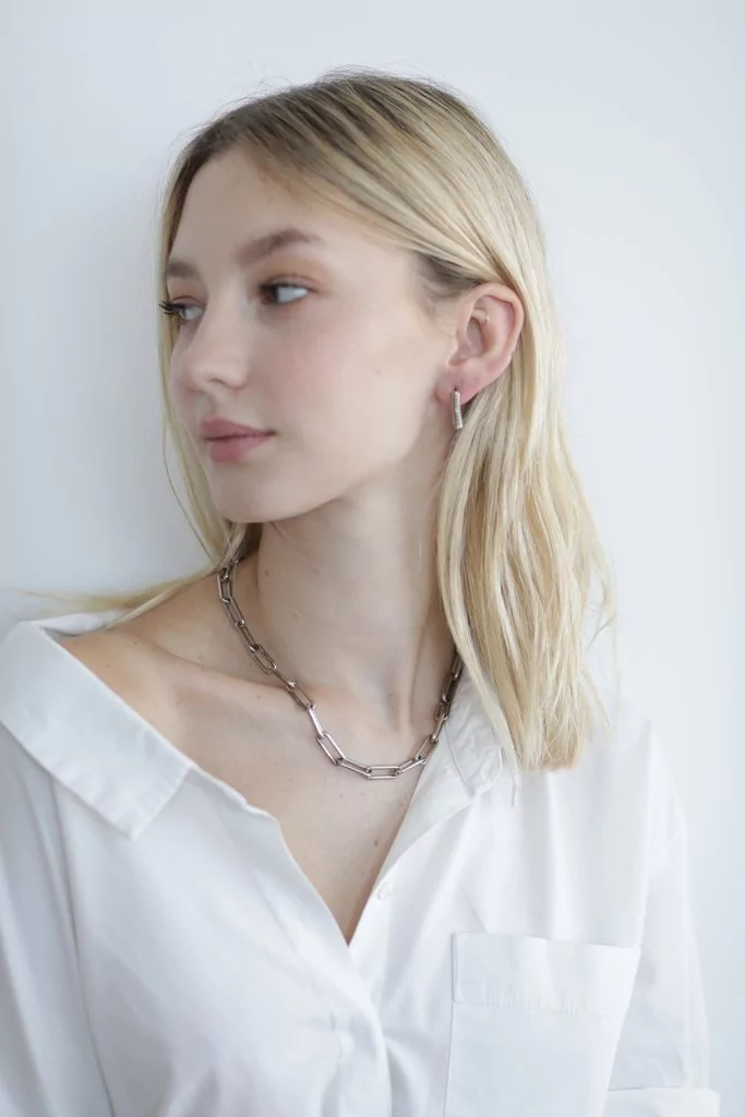 Collar corto de cadena de cobre con eslabones soldados. Baño en niquel.
