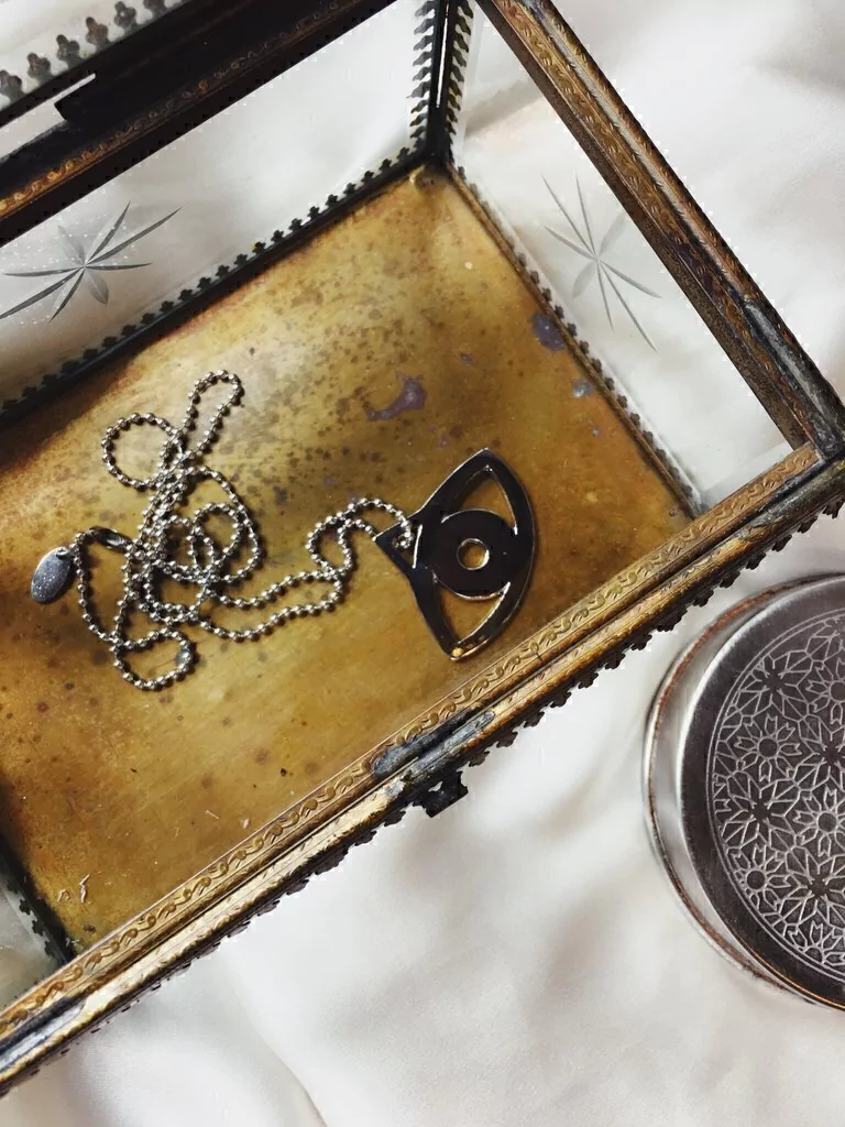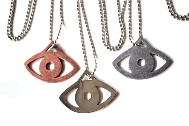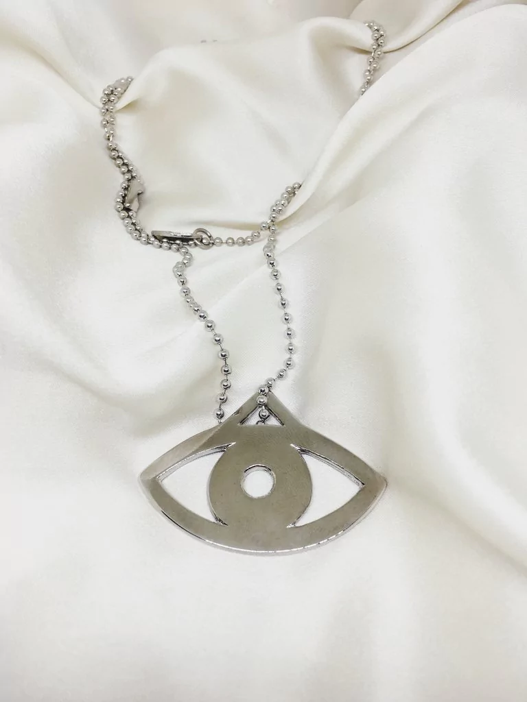 COLLAR DE CADENA BOLITA NIQUEL LARGO. CON DIJE DE FUNDICIÓN NIQUELADO CON FORMA DE OJO.