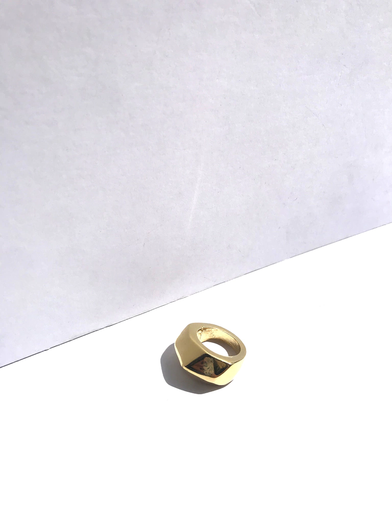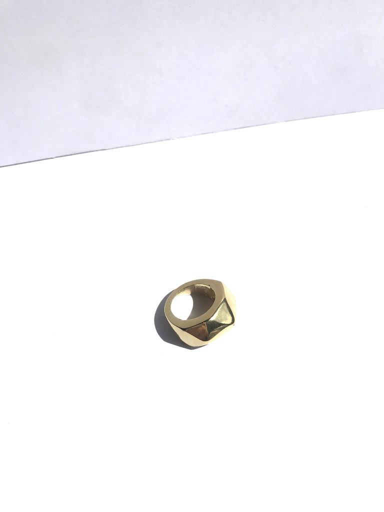 Anillo realizado en fundicion metalica, con forma geometrica, bañado en ORO 24K o niquel.
