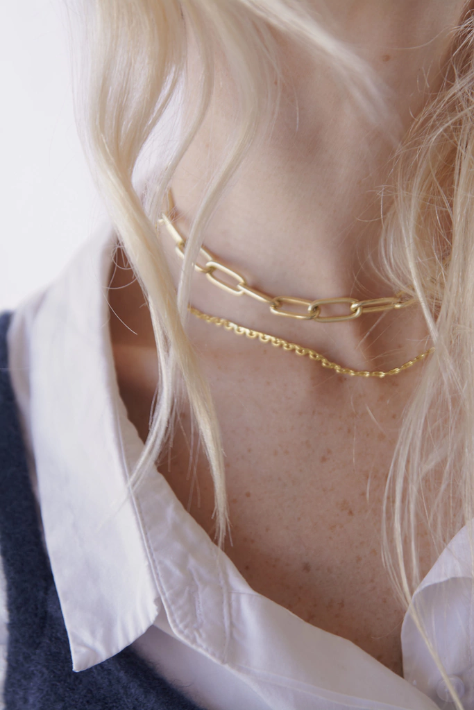 Collar realizado en cadena de cobre bañada en ORO 24K. con alargue que permite regular su largo.
