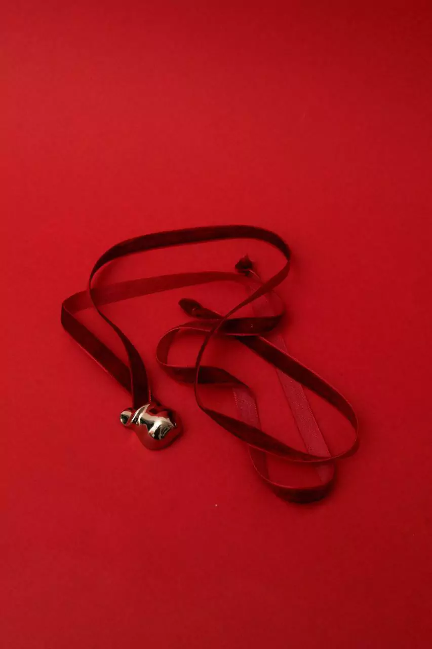 Choker de cinta de velvet bordo doble vuelta con dije metalico bañado en oro o platedo.